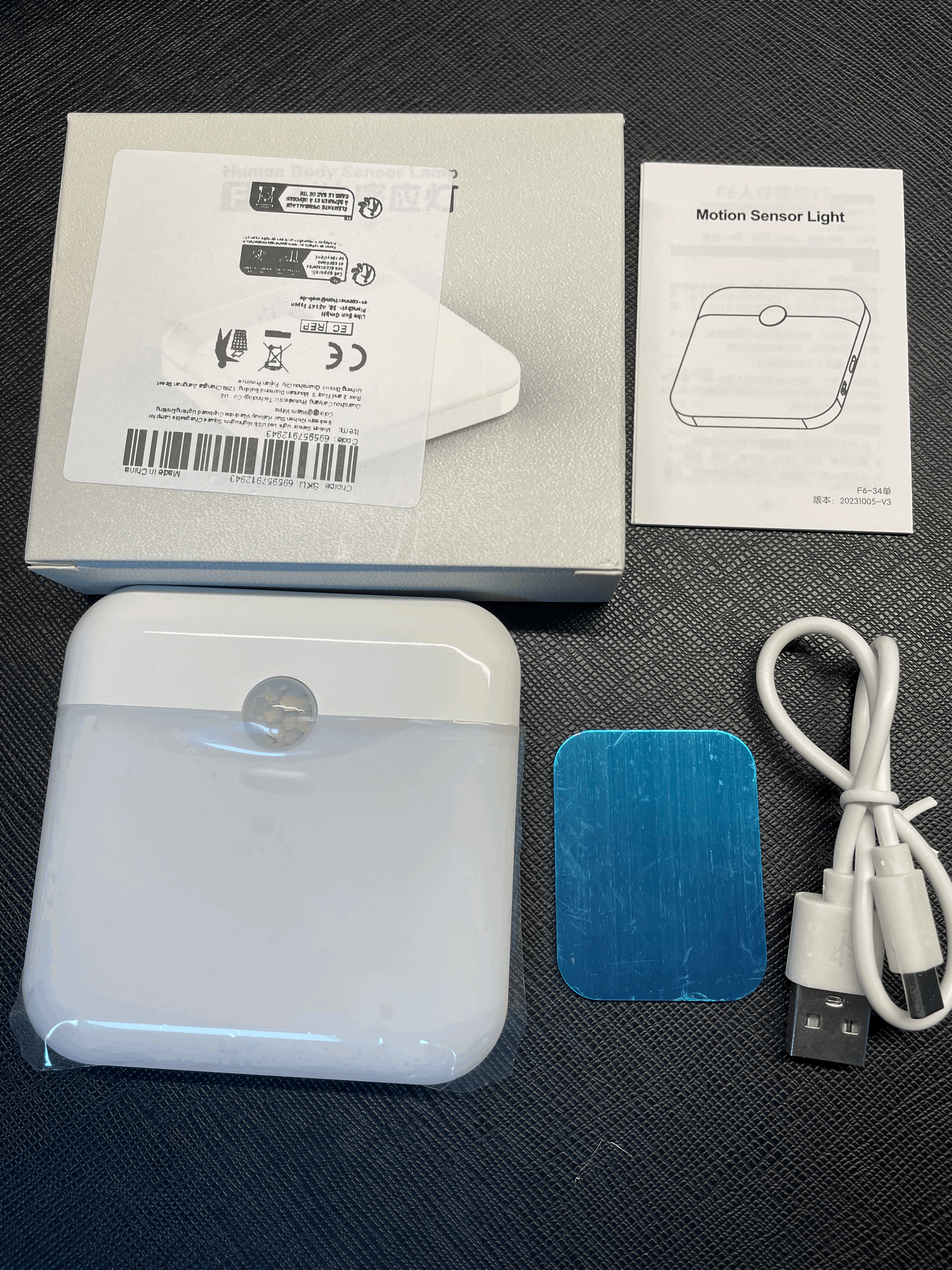 이 제품은 사각형 센서등이며 마친가지로 부착용 철판과