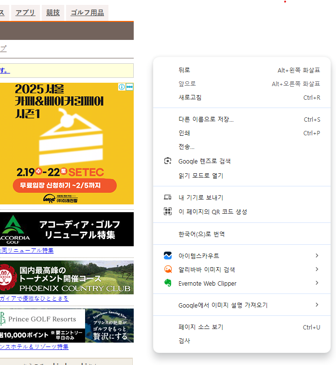 화면에서 오른쪽 마우스 클릭하면 중간에 한국어 번역이 나오고 (크롬 기준) 클릭해줍니다