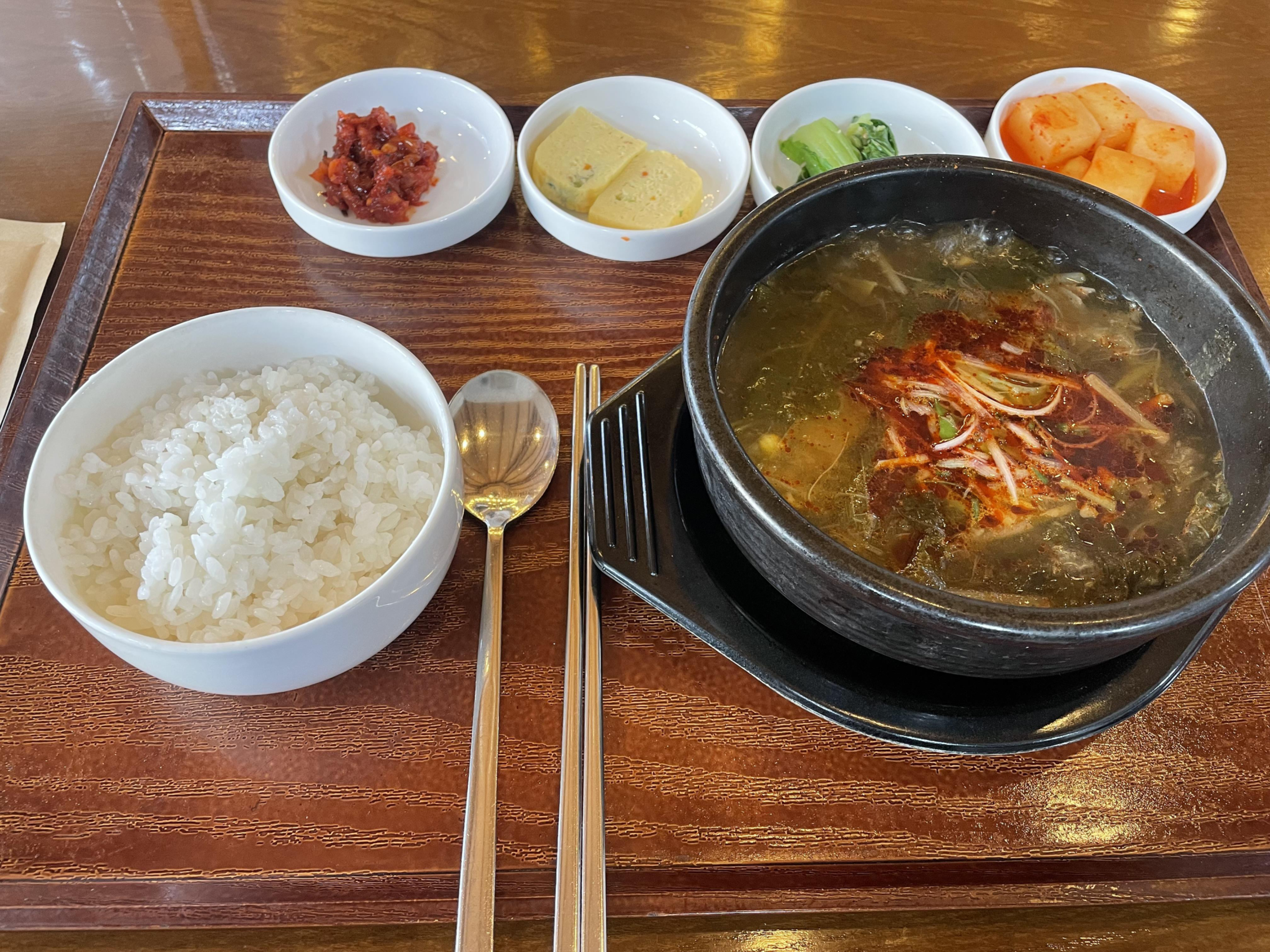 그린도 평이하고 코스관리가 겨울치고는 나쁘지 않습니다. 아침 주고 저 가격이면 머 훌륭하죠. 아침은 두 가지 메뉴였는데 저는 얼큰한 식사를 선택했습니다.