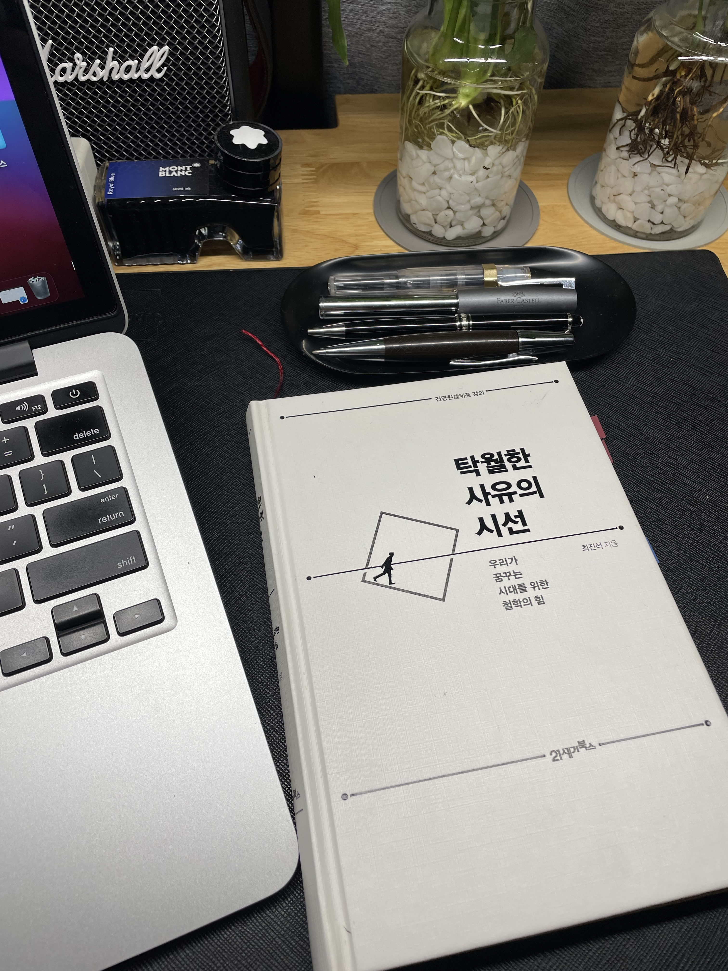최진석 교수가 쓴 탁월한 사유의 시선은 2017년 초판을 발행하였고 나는 이 책을 19년 11월 구매하였다. 워낙 군더더기 없는 강연으로 유명하신 분이라 그 내용을 많이 알고 접해보신 분들도 많을 거라고 생각한다. 그는 서강대학교 철학과에서 학사 및 석사, 북경대학교에서 철학 박사를 받았으며 이 책을 비롯하여 노자와 장자 등 중국사상에 대한 저서를 많이 써오신 분이다. 책은 총 5강으로 되어 있다. 1강은 부정(버리다), 2강 선도(이끌다), 3강 독립(홀로서다),4강 진인(참된 나를 찾다), 5강 문답(공유하다)으로 구성되었고 이 책을 읽으면서 페이지마다 색인 테이프를 붙이고 줄을 치면서 예전 교과서를 시험 전에 읽던 학생처럼 공부하는 느낌으로 이 책을 읽었던 기억이 난다. 원래 사회과학을 전공한 사람으로 이런 철학적인 부분은 나에게 많이 부족한 부분이었고 이런 갈증을 해결하고자 자료를 많이 찾아보다가 최진석 교수의 강의를 들어볼 기회가 생겼고 그로 인해 이 책도 구매하여 읽게 된 계기가 되었다. 최교수의 철학적인 기본은 중국 철학에서 정립이 되었다. 따라서 서양의 철학적인 부분과는 접근 방법에 차이가 날 수도 있겠지만 만물의 근원과 어떤 사물, 사건을 보는 건 서영과 동양이 그리 차이가 있을 것으로는 생각하지 않는다. 현재 우리나라는 이념논쟁이 일어나서 시끄러울 때가 있었다. 역사적 특수성으로 그 이념논쟁은 어쩔 수 없는 부분이 있기도 하다. 이런 것을 정반합의 논리적 방향성을 가지고 앞으로 나아간다면 그 논쟁도 긍정적이고 건설적인 부분이 있을 것이라 생각한다.